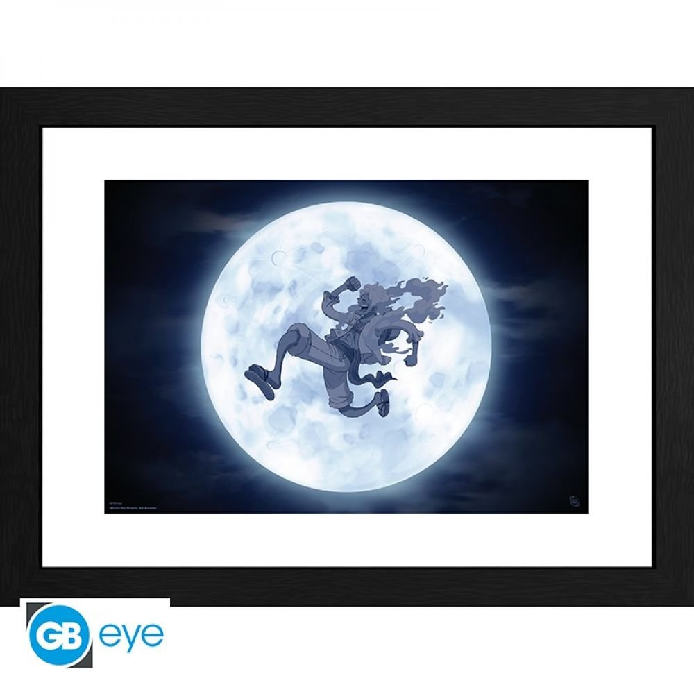 Joy Boy ? Nika le dieu du soleil ? Réincarnation d’une divinité ? La nouvelle transformation de Luffy est pleine de mystères ! Souriez avec lui sur ce magnifique tirage encadré One Piece par GB Eye !