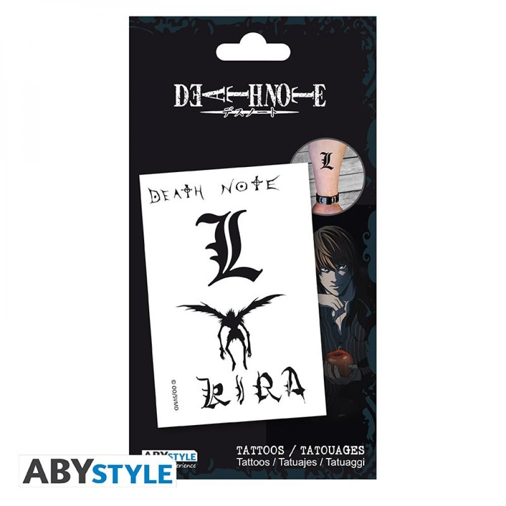 Vous aimez Death Note ? L, Kira, Ryuk, montrez vos préférences directement sur vous grâce à ce merveilleux set de tatouages Death Note par ABYstyle !